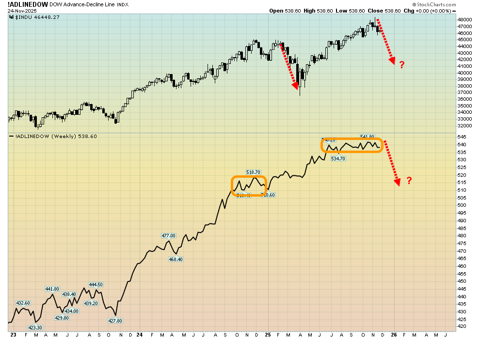 - What about the stock markets? Please click here now. Click this US stock market chart. The advance-decline line (ADL) is an important (and often under-appreciated) indicator for this market.