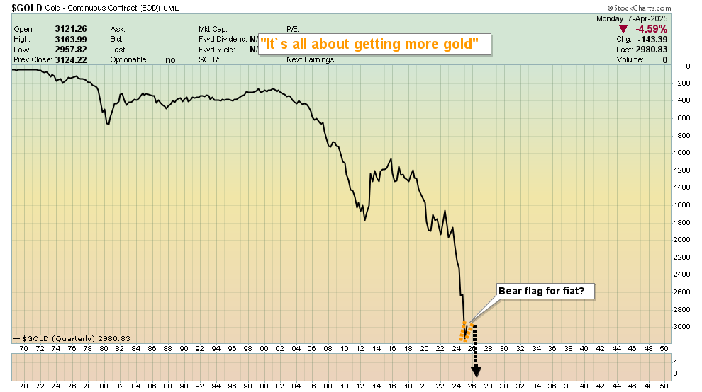 - Short-term traders should think about switching their goal… from getting more fiat to getting more gold. That’s because the big trend for fiat is down, down, and down. Even with the best short-term tactics, the mission to get more fiat by constantly buying and selling gold is vastly more onerous than the opposite mission, which is to buy and sell fiat… to get more gold!