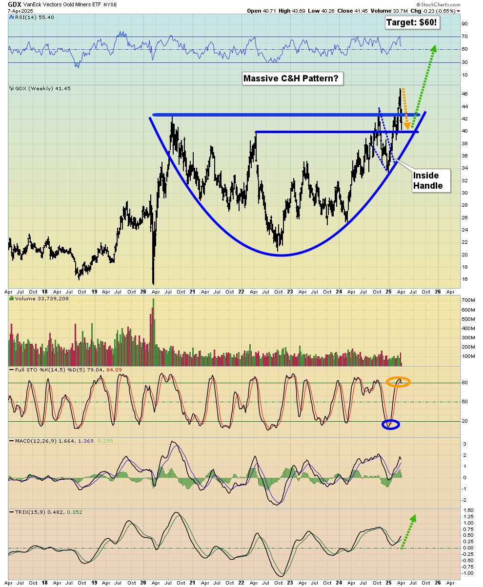 - Please click here now. Click to enlarge this weekly GDX chart. There was a textbook pullback after the breakout and a huge rally straight to $60 is one realistic scenario from here.